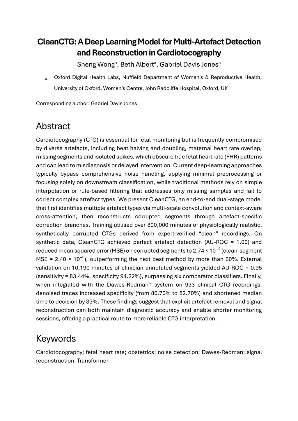 CleanCTG: A Deep Learning Model for Multi-Artefact Detection and Reconstruction in Cardiotocography