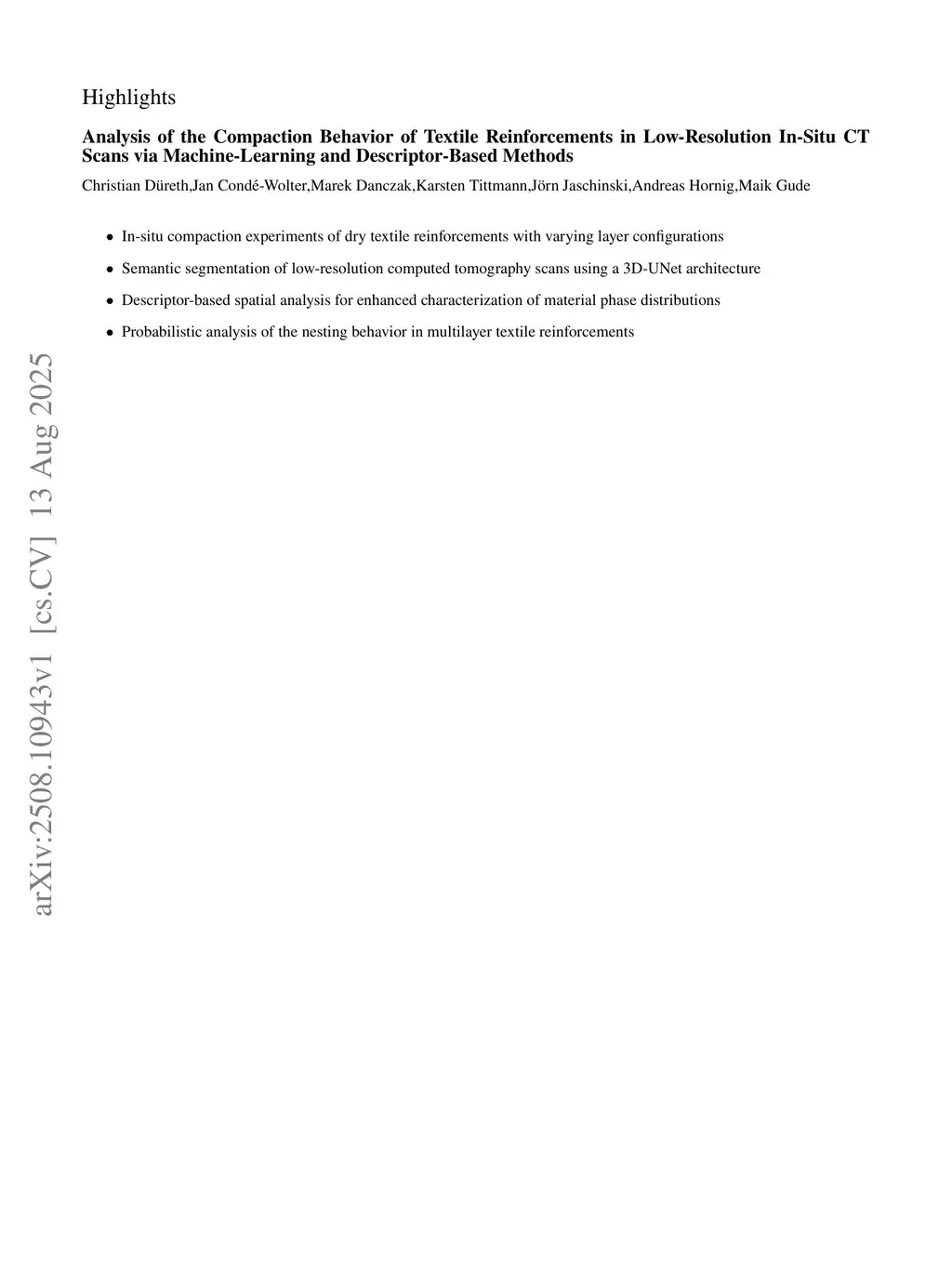 Analysis of the Compaction Behavior of Textile Reinforcements in Low-Resolution In-Situ CT Scans via Machine-Learning and Descriptor-Based Methods
