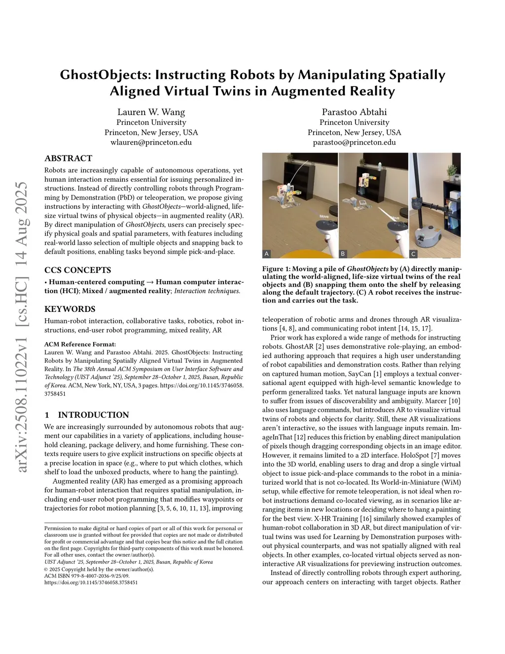 GhostObjects: Instructing Robots by Manipulating Spatially Aligned Virtual Twins in Augmented Reality