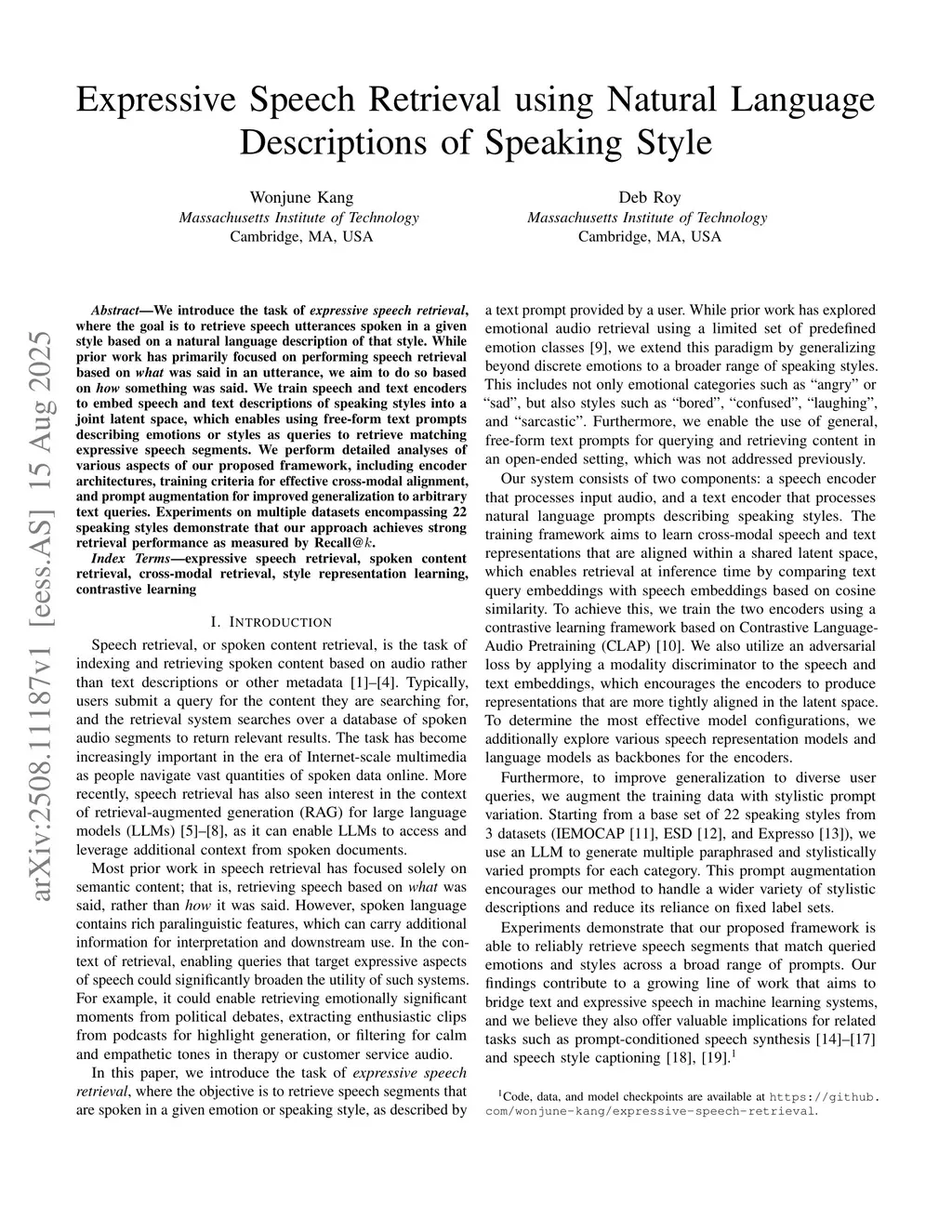 Expressive Speech Retrieval using Natural Language Descriptions of Speaking Style