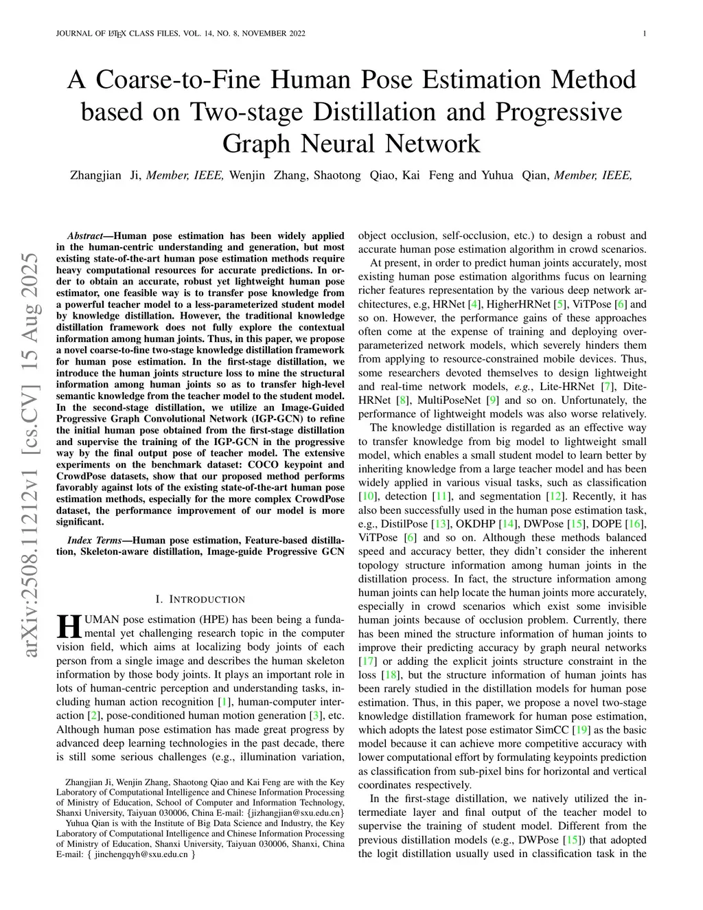 A Coarse-to-Fine Human Pose Estimation Method based on Two-stage Distillation and Progressive Graph Neural Network