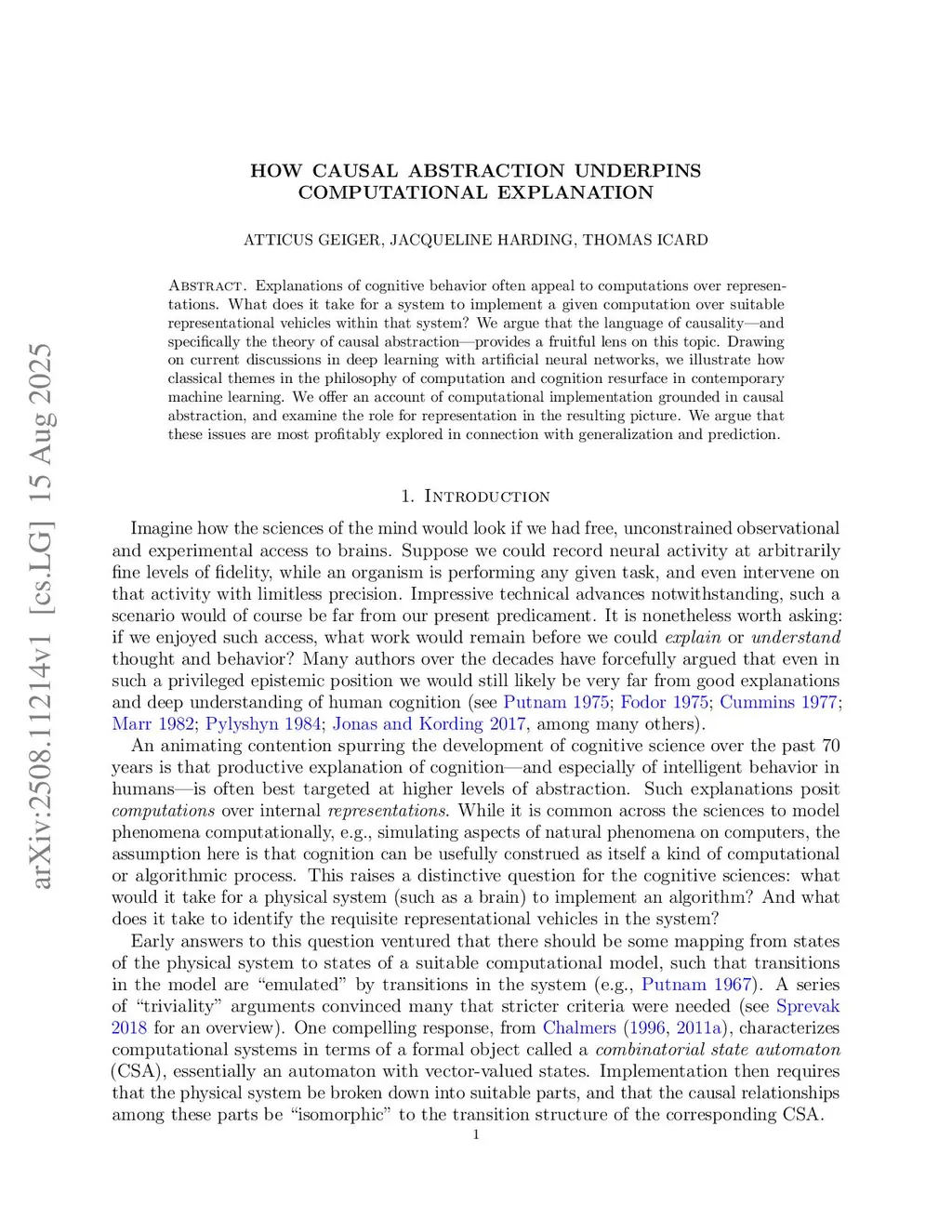 How Causal Abstraction Underpins Computational Explanation