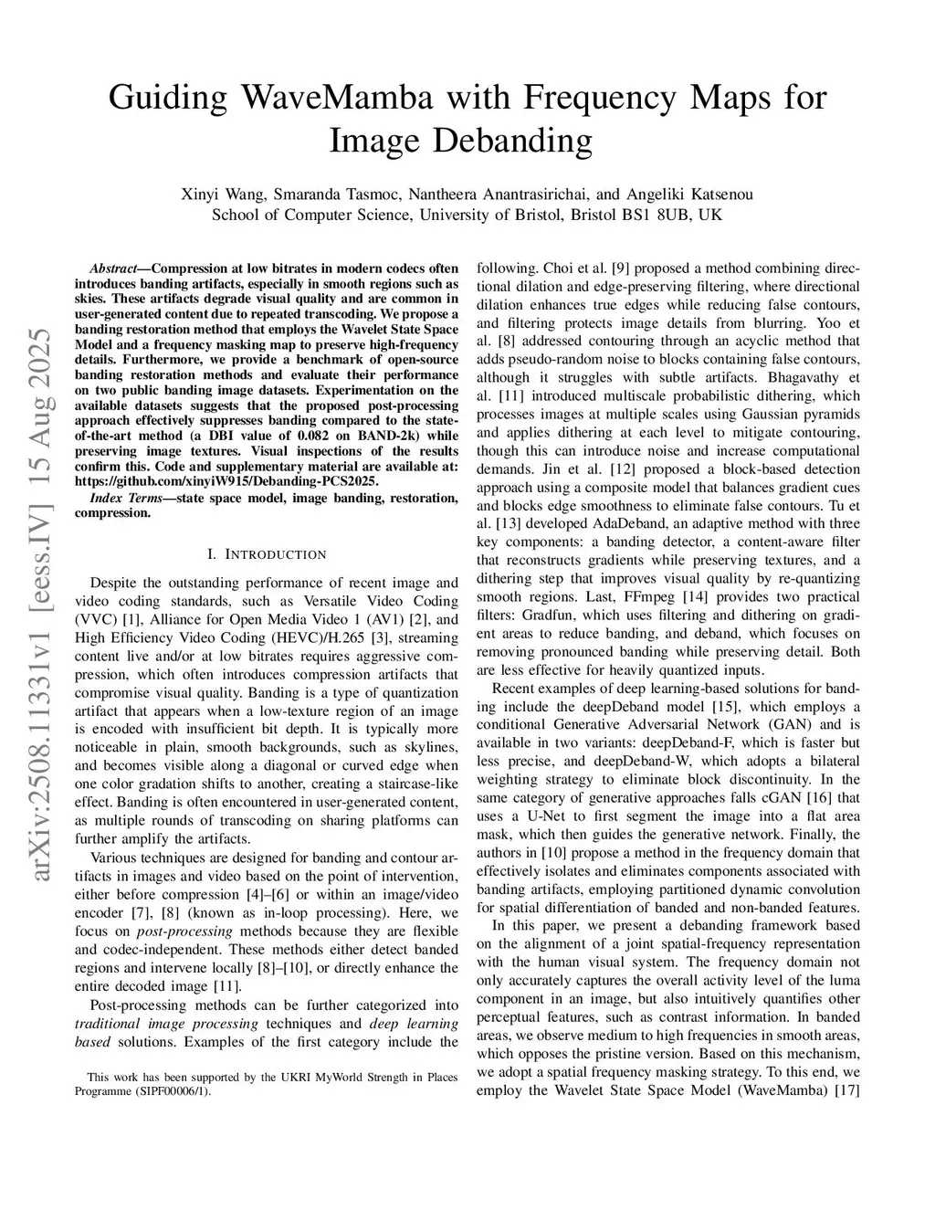 Guiding WaveMamba with Frequency Maps for Image Debanding