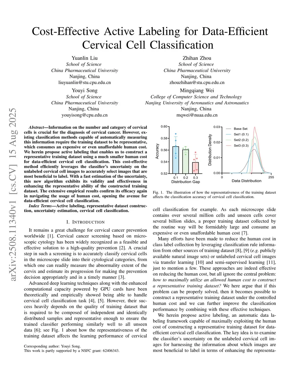 Cost-Effective Active Labeling for Data-Efficient Cervical Cell Classification