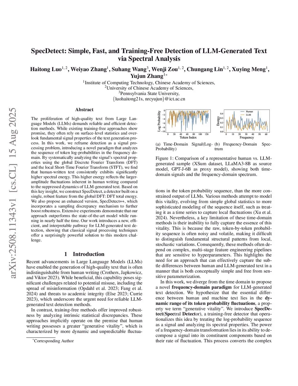 SpecDetect: Simple, Fast, and Training-Free Detection of LLM-Generated Text via Spectral Analysis