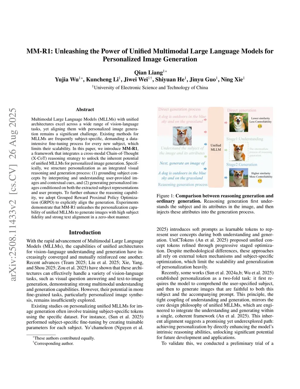 Multimodal Large Language Models (MLLMs) with unified architectures excel across a wide range of vision-language tasks, yet aligning them with personalized image generation remains a significant challenge. Existing methods for MLLMs are frequently subject-specific, demanding a data-intensive fine-tuning process for every new subject, which limits their scalability. In this paper, we introduce MM-R1, a framework that integrates a cross-modal Chain-of-Thought (X-CoT) reasoning strategy to unlock the inherent potential of unified MLLMs for personalized image generation. Specifically, we structure personalization as an integrated visual reasoning and generation process: (1) grounding subject concepts by interpreting and understanding user-provided images and contextual cues, and (2) generating personalized images conditioned on both the extracted subject representations and user prompts. To further enhance the reasoning capability, we adopt Grouped Reward Proximal Policy Optimization (GRPO) to explicitly align the generation. Experiments demonstrate that MM-R1 unleashes the personalization capability of unified MLLMs to generate images with high subject fidelity and strong text alignment in a zero-shot manner.