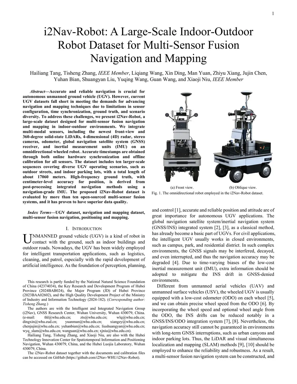 i2Nav-Robot: A Large-Scale Indoor-Outdoor Robot Dataset for Multi-Sensor Fusion Navigation and Mapping