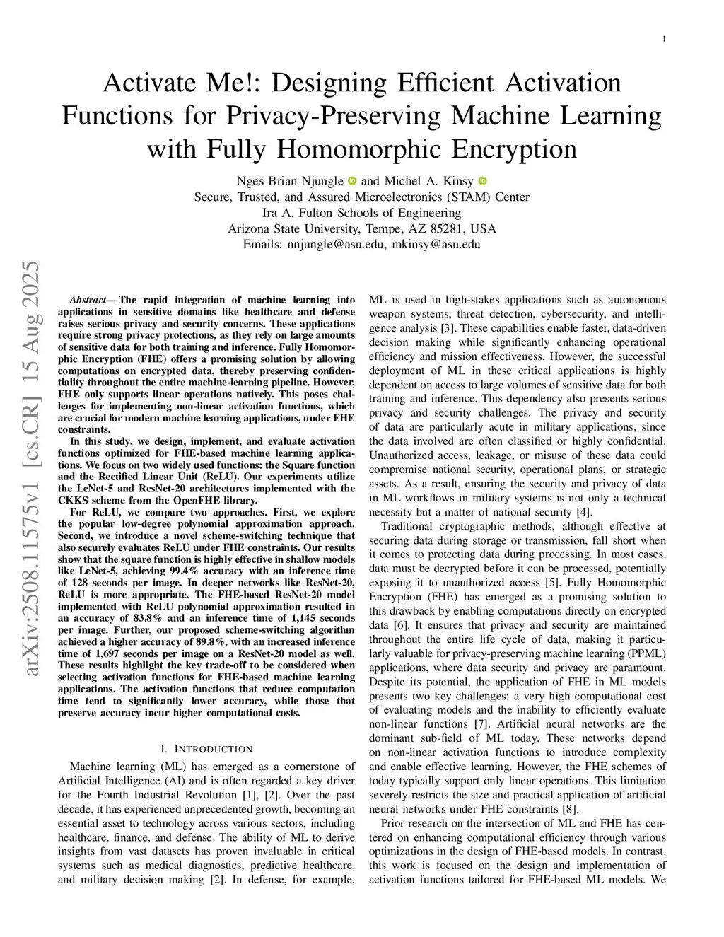 The growing adoption of machine learning in sensitive areas such as healthcare and defense introduces significant privacy and security challenges. These domains demand robust data protection, as models depend on large volumes of sensitive information for both training and inference. Fully Homomorphic Encryption (FHE) presents a compelling solution by enabling computations directly on encrypted data, maintaining confidentiality across the entire machine learning workflow. However, FHE inherently supports only linear operations, making it difficult to implement non-linear activation functions, essential components of modern neural networks. This work focuses on designing, implementing, and evaluating activation functions tailored for FHE-based machine learning. We investigate two commonly used functions: the Square function and Rectified Linear Unit (ReLU), using LeNet-5 and ResNet-20 architectures with the CKKS scheme from the OpenFHE library. For ReLU, we assess two methods: a conventional low-degree polynomial approximation and a novel scheme-switching technique that securely evaluates ReLU under FHE constraints. Our findings show that the Square function performs well in shallow networks like LeNet-5, achieving 99.4% accuracy with 128 seconds per image. In contrast, deeper models like ResNet-20 benefit more from ReLU. The polynomial approximation yields 83.8% accuracy with 1,145 seconds per image, while our scheme-switching method improves accuracy to 89.8%, albeit with a longer inference time of 1,697 seconds. These results underscore a critical trade-off in FHE-based ML: faster activation functions often reduce accuracy, whereas those preserving accuracy demand greater computational resources.