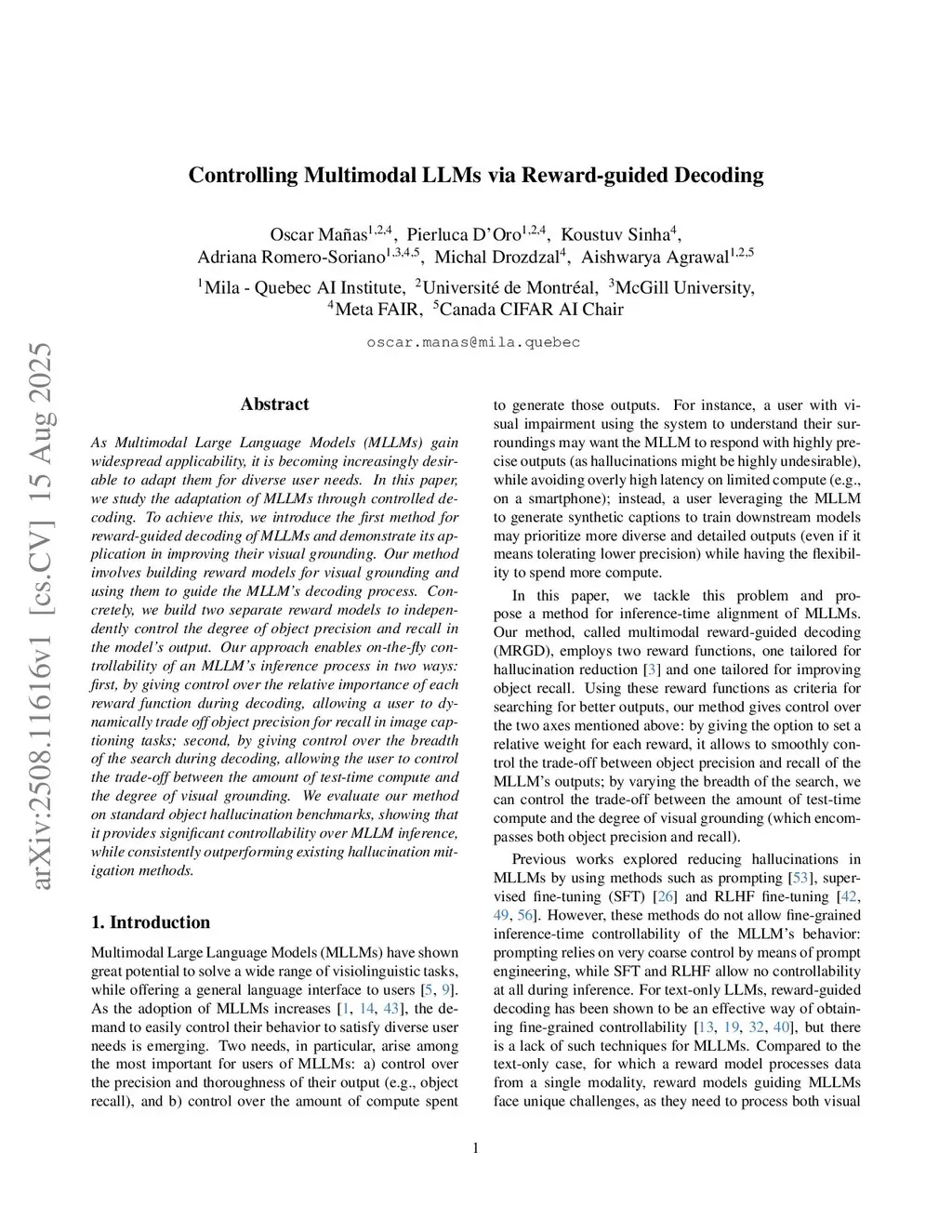 Controlling Multimodal LLMs via Reward-guided Decoding