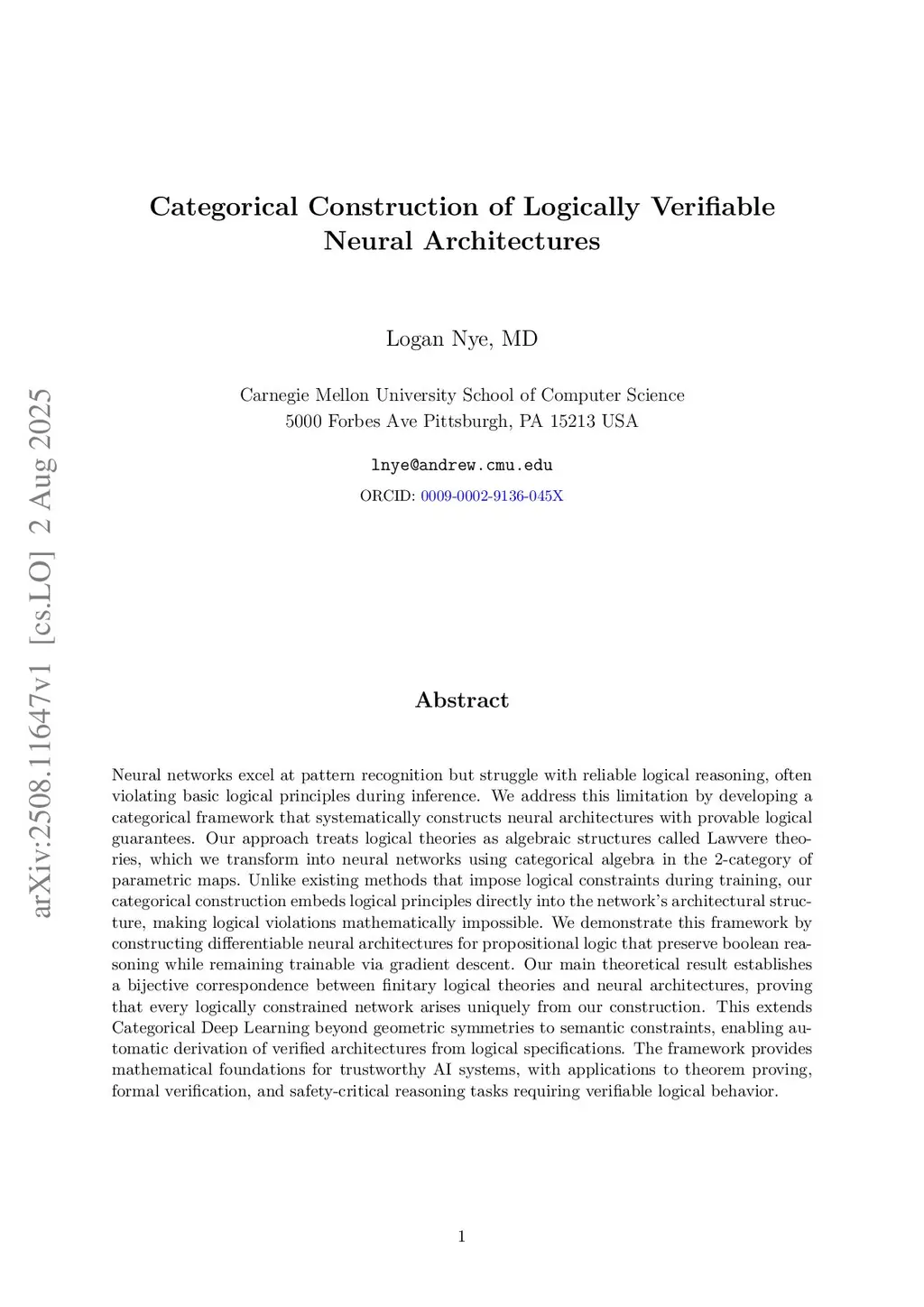 Categorical Construction of Logically Verifiable Neural Architectures