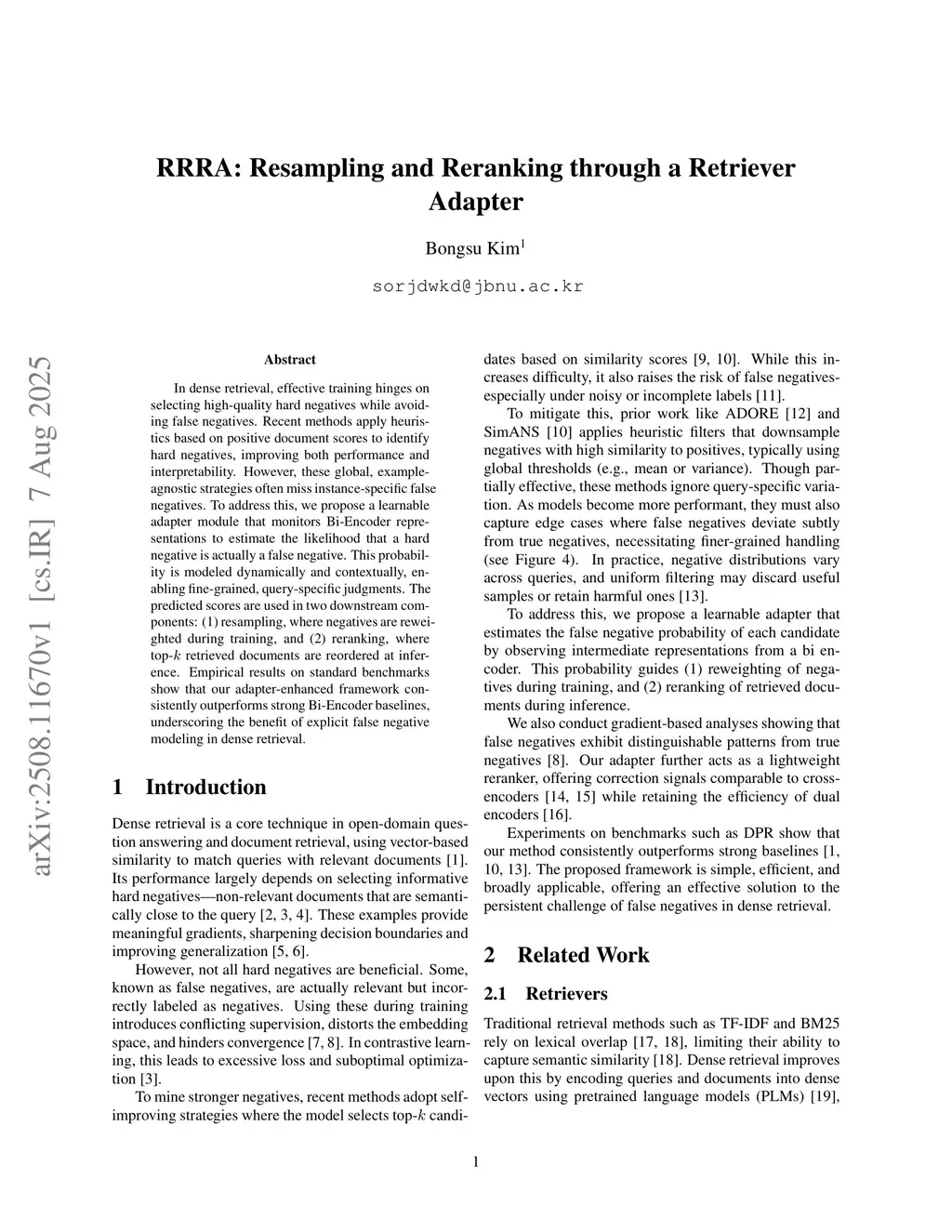 RRRA: Resampling and Reranking through a Retriever Adapter