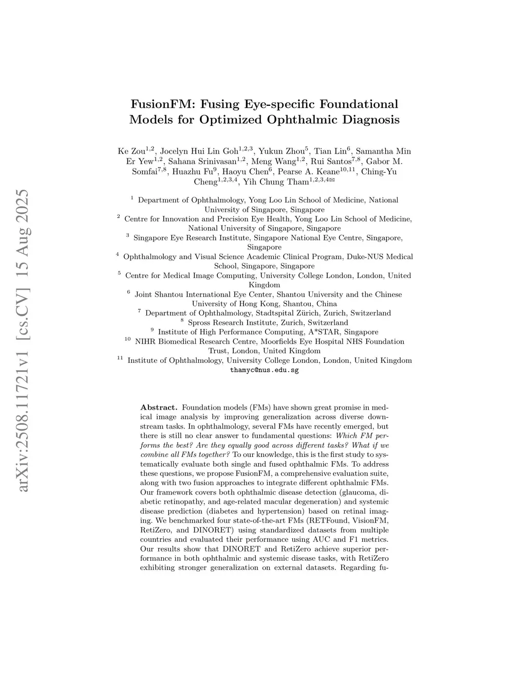 FusionFM: Fusing Eye-specific Foundational Models for Optimized Ophthalmic Diagnosis