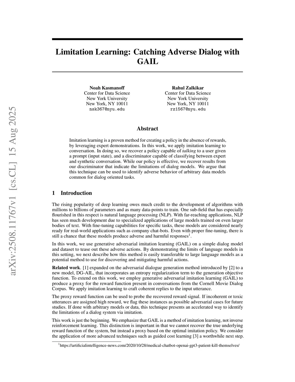 Limitation Learning: Catching Adverse Dialog with GAIL