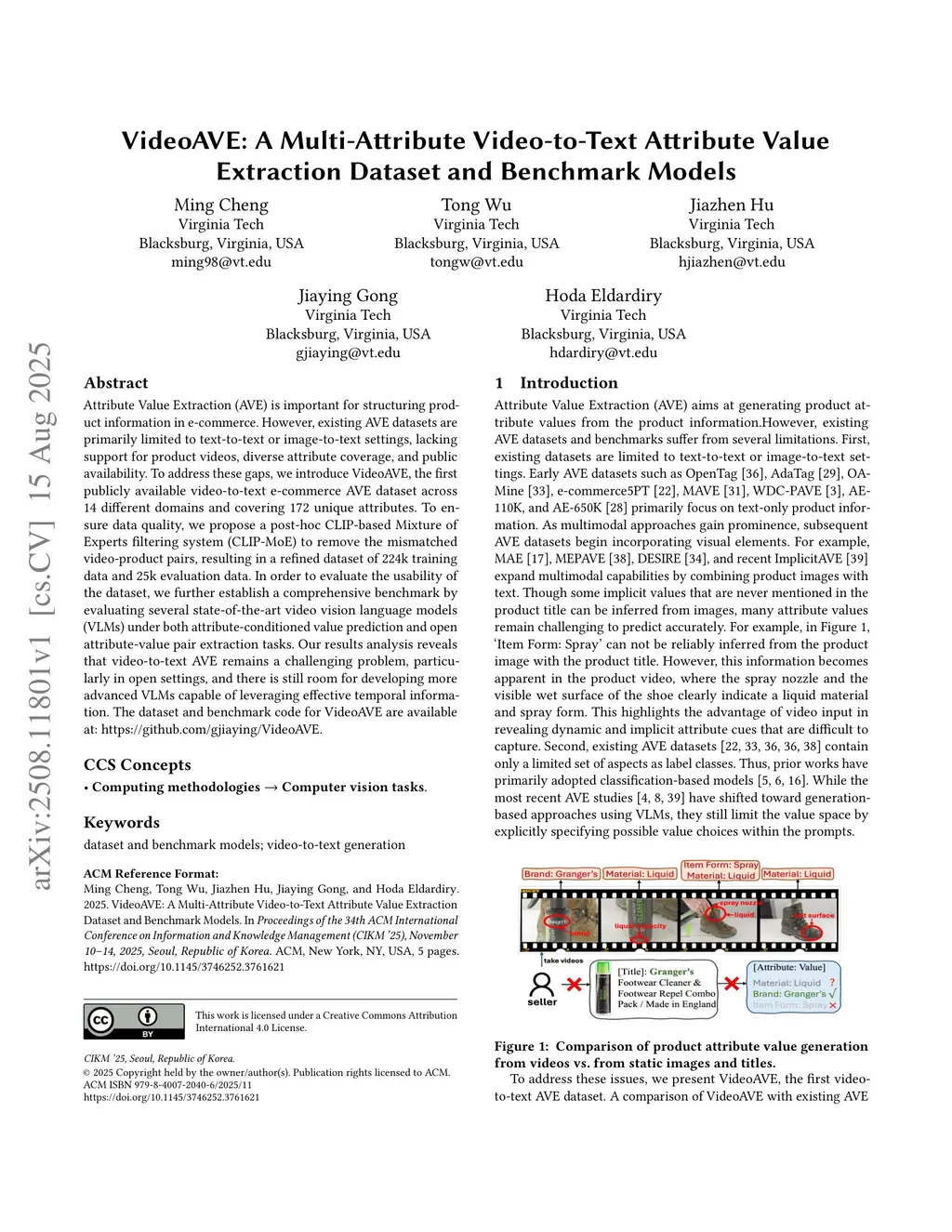 VideoAVE: A Multi-Attribute Video-to-Text Attribute Value Extraction Dataset and Benchmark Models