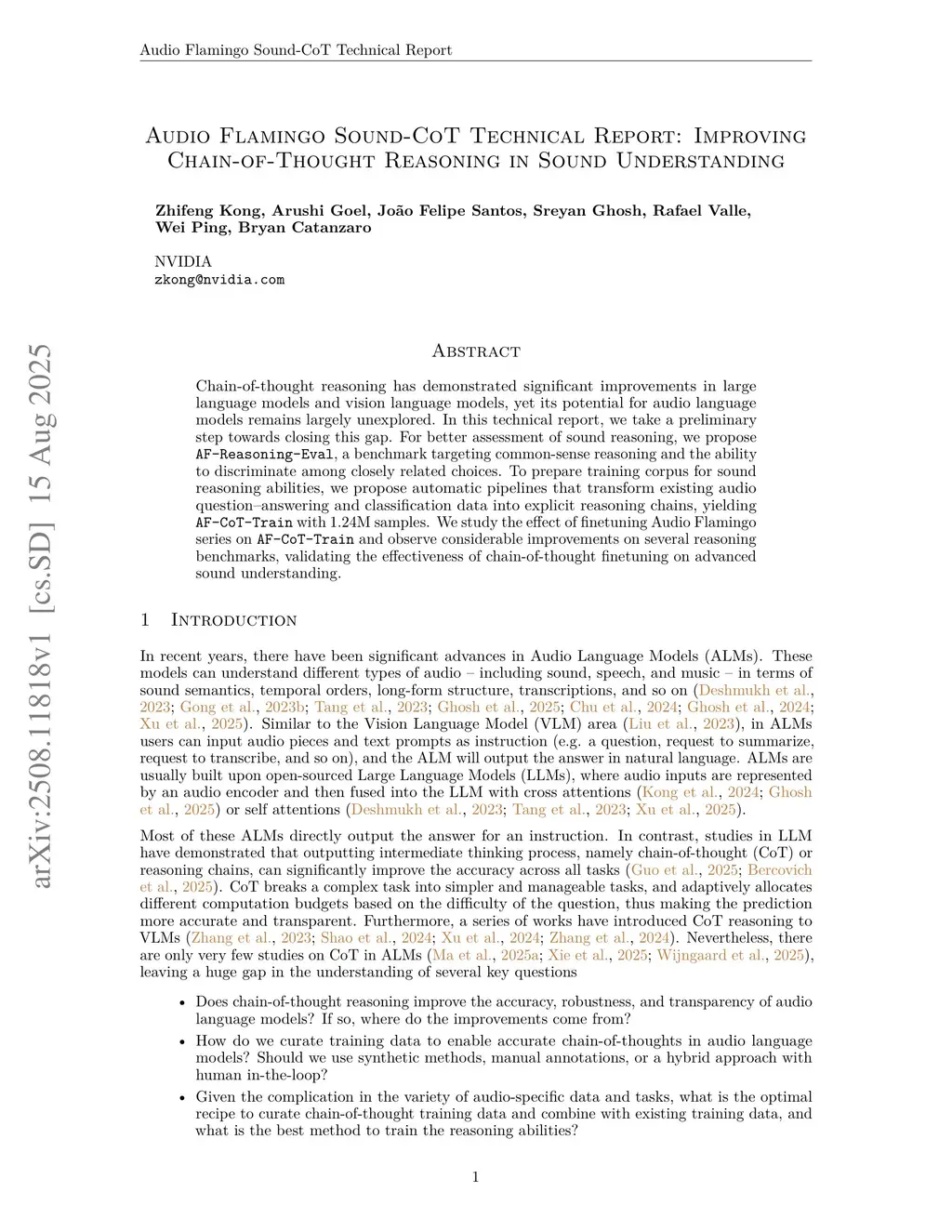 Chain-of-thought reasoning has demonstrated significant improvements in large language models and vision language models, yet its potential for audio language models remains largely unexplored. In this technical report, we take a preliminary step towards closing this gap. For better assessment of sound reasoning, we propose AF-Reasoning-Eval, a benchmark targeting common-sense reasoning and the ability to discriminate among closely related choices. To prepare training corpus for sound reasoning abilities, we propose automatic pipelines that transform existing audio question answering and classification data into explicit reasoning chains, yielding AF-CoT-Train with 1.24M samples. We study the effect of finetuning Audio Flamingo series on AF-CoT-Train and observe considerable improvements on several reasoning benchmarks, validating the effectiveness of chain-of-thought finetuning on advanced sound understanding.
