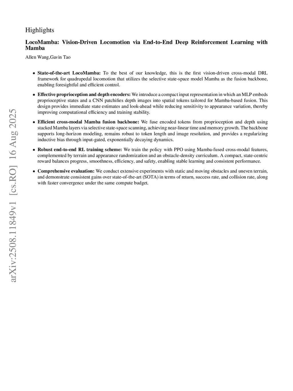 LocoMamba: Vision-Driven Locomotion via End-to-End Deep Reinforcement Learning with Mamba