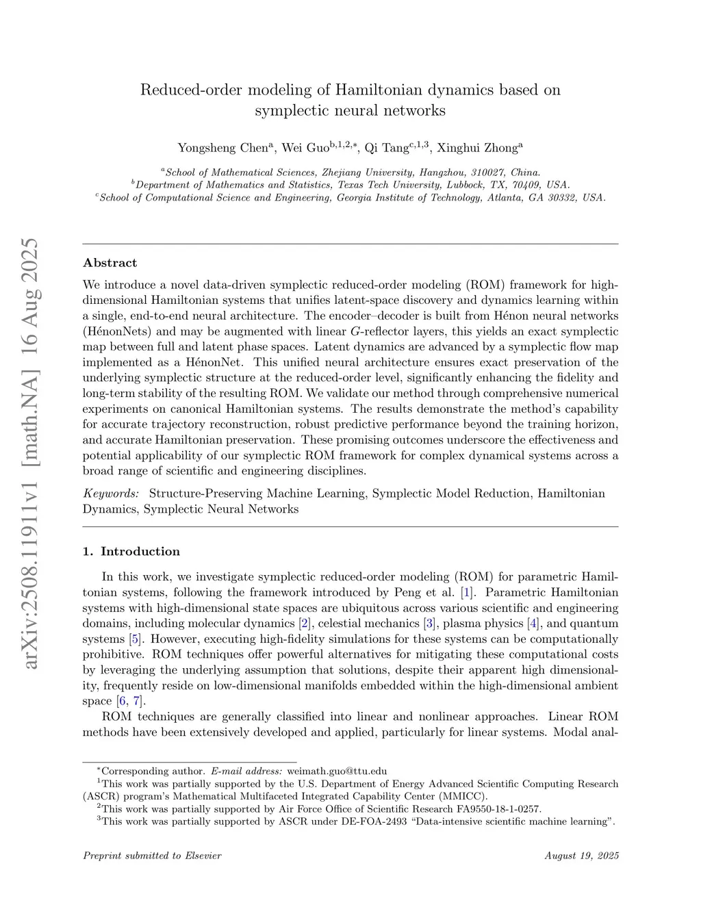 Reduced-order modeling of Hamiltonian dynamics based on symplectic neural networks
