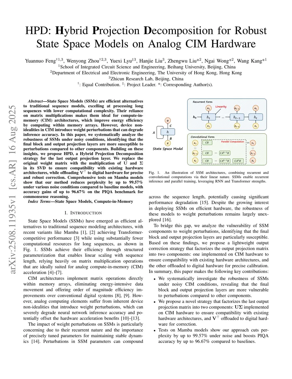 HPD: Hybrid Projection Decomposition for Robust State Space Models on Analog CIM Hardware