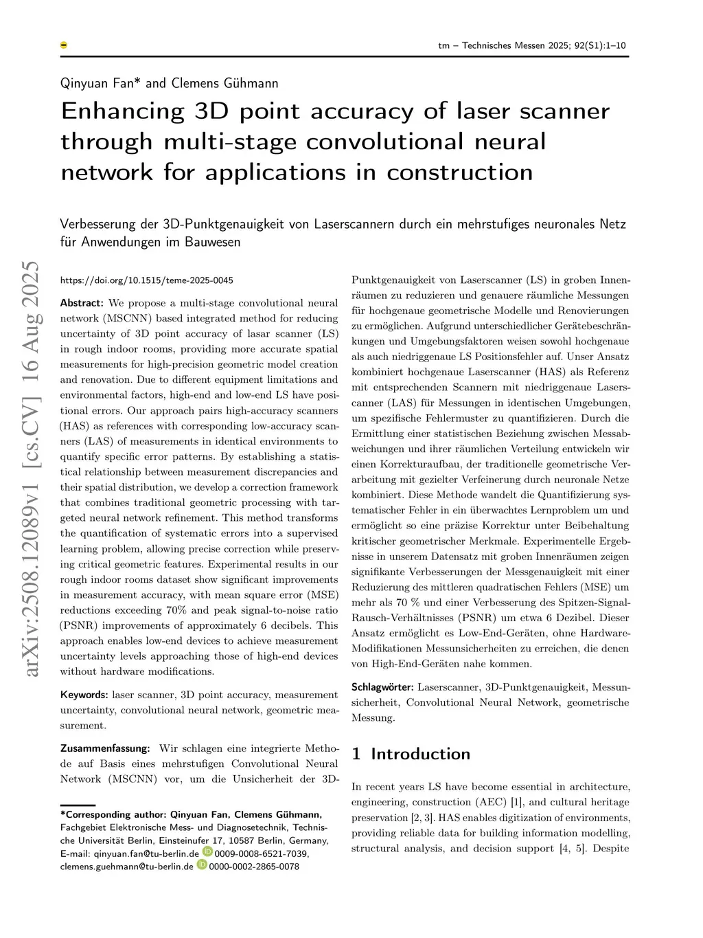 Enhancing 3D point accuracy of laser scanner through multi-stage convolutional neural network for applications in construction