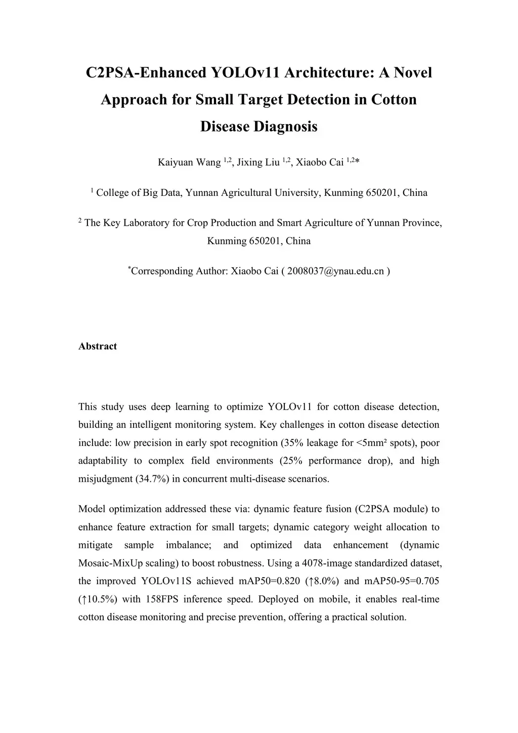 C2PSA-Enhanced YOLOv11 Architecture: A Novel Approach for Small Target Detection in Cotton Disease Diagnosis