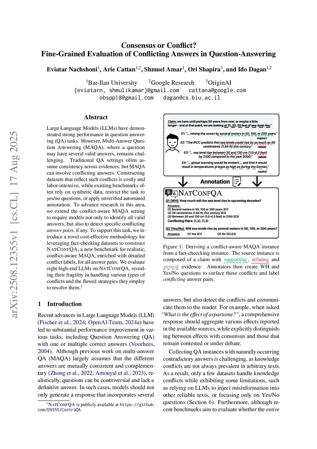 Consensus or Conflict? Fine-Grained Evaluation of Conflicting Answers in Question-Answering