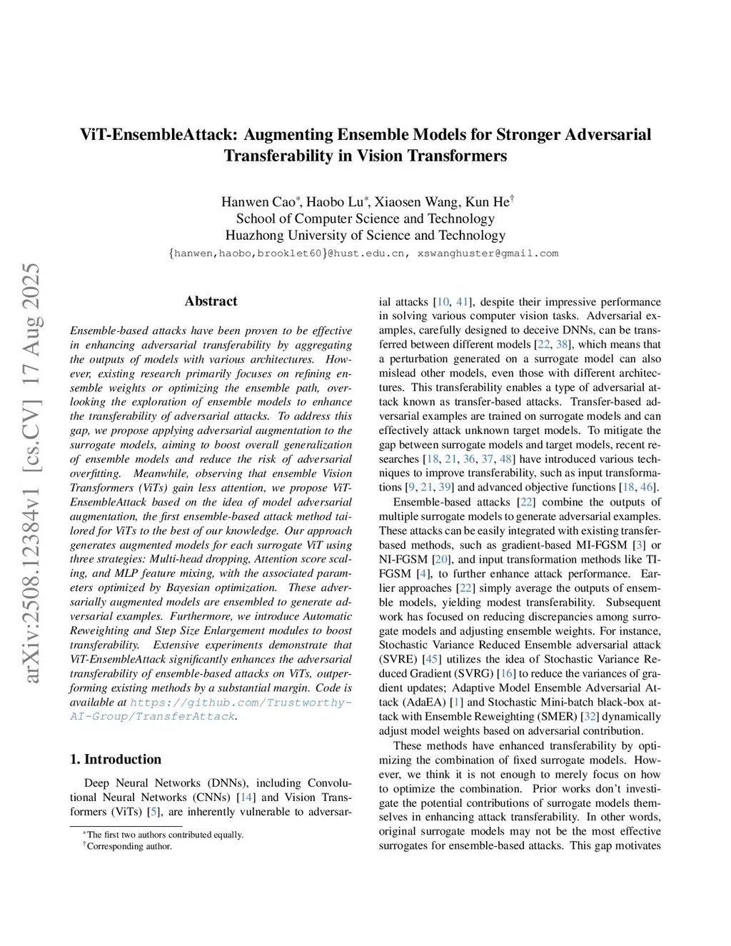 ViT-EnsembleAttack: Augmenting Ensemble Models for Stronger Adversarial Transferability in Vision Transformers