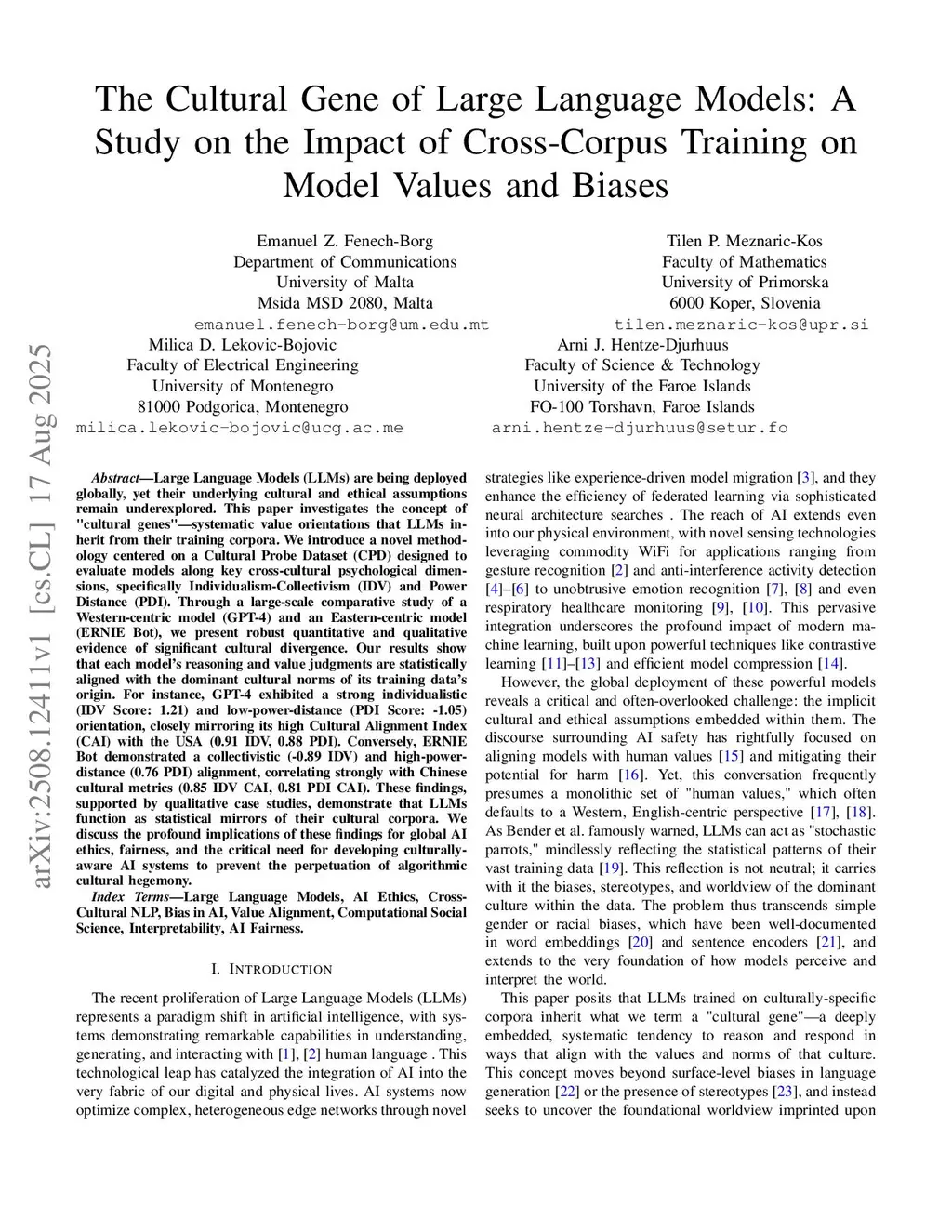 The Cultural Gene of Large Language Models: A Study on the Impact of Cross-Corpus Training on Model Values and Biases