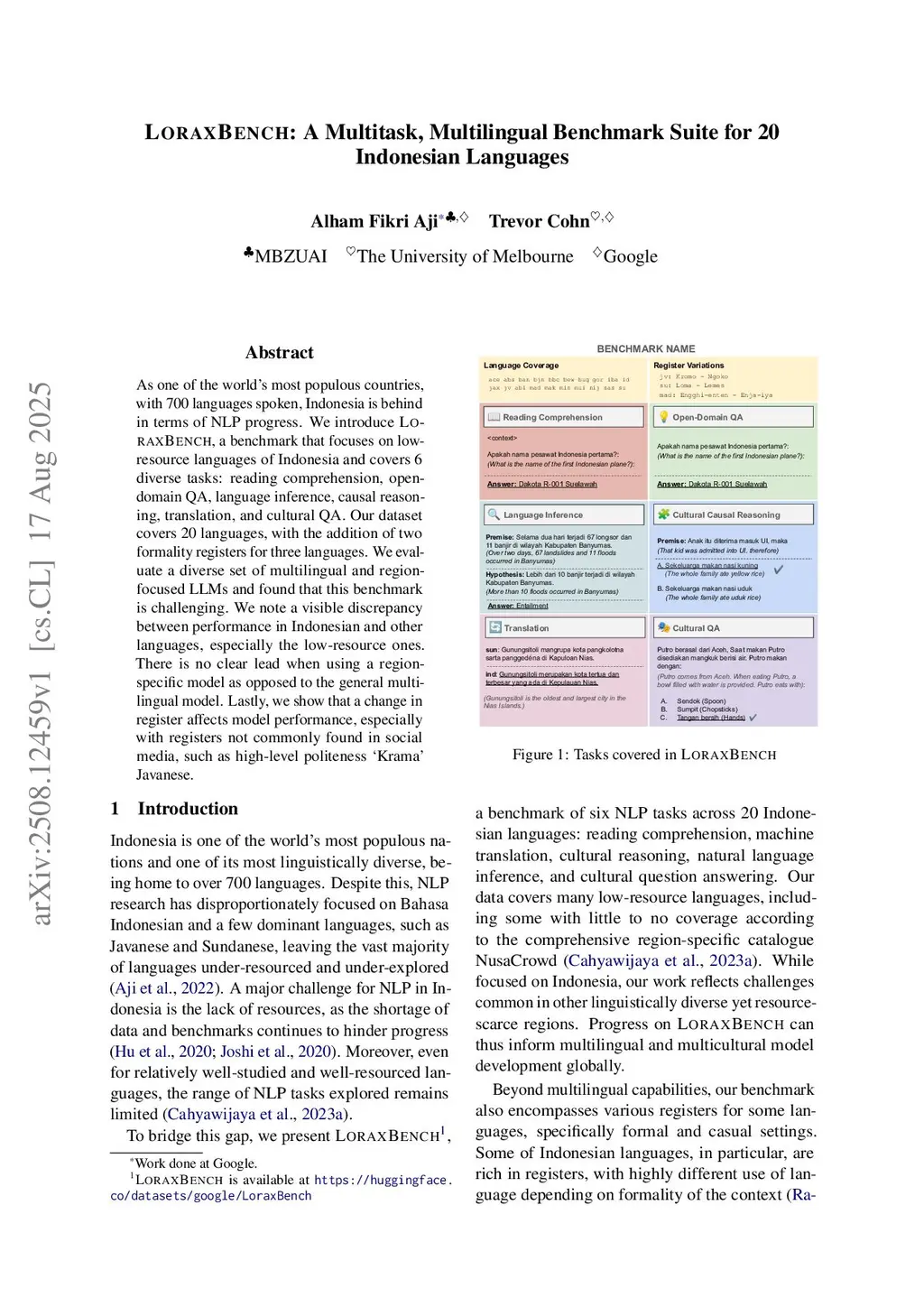 LoraxBench: A Multitask, Multilingual Benchmark Suite for 20 Indonesian Languages
