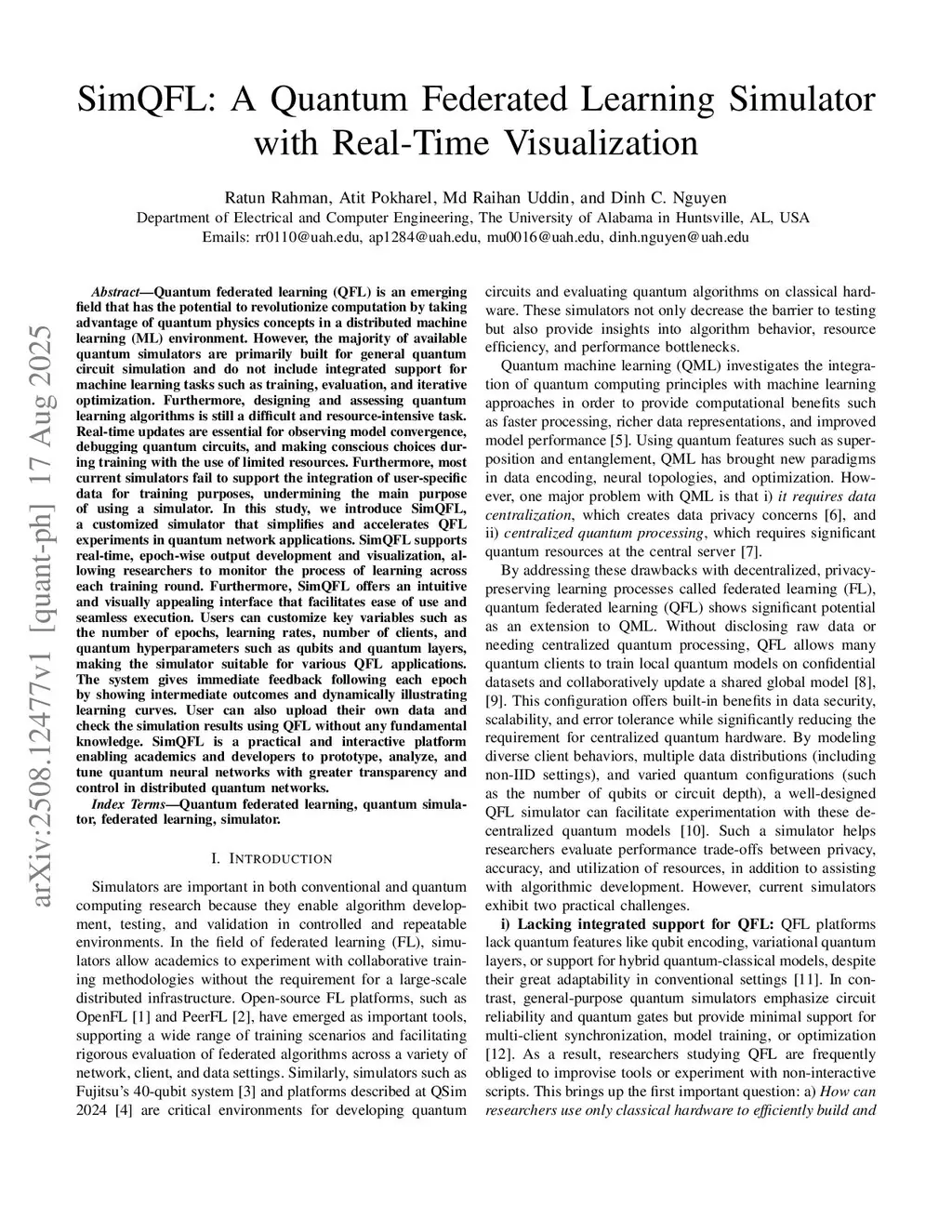 Quantum federated learning (QFL) is an emerging field that has the potential to revolutionize computation by taking advantage of quantum physics concepts in a distributed machine learning (ML) environment. However, the majority of available quantum simulators are primarily built for general quantum circuit simulation and do not include integrated support for machine learning tasks such as training, evaluation, and iterative optimization. Furthermore, designing and assessing quantum learning algorithms is still a difficult and resource-intensive task. Real-time updates are essential for observing model convergence, debugging quantum circuits, and making conscious choices during training with the use of limited resources. Furthermore, most current simulators fail to support the integration of user-specific data for training purposes, undermining the main purpose of using a simulator. In this study, we introduce SimQFL, a customized simulator that simplifies and accelerates QFL experiments in quantum network applications. SimQFL supports real-time, epoch-wise output development and visualization, allowing researchers to monitor the process of learning across each training round. Furthermore, SimQFL offers an intuitive and visually appealing interface that facilitates ease of use and seamless execution. Users can customize key variables such as the number of epochs, learning rates, number of clients, and quantum hyperparameters such as qubits and quantum layers, making the simulator suitable for various QFL applications. The system gives immediate feedback following each epoch by showing intermediate outcomes and dynamically illustrating learning curves. SimQFL is a practical and interactive platform enabling academics and developers to prototype, analyze, and tune quantum neural networks with greater transparency and control in distributed quantum networks.