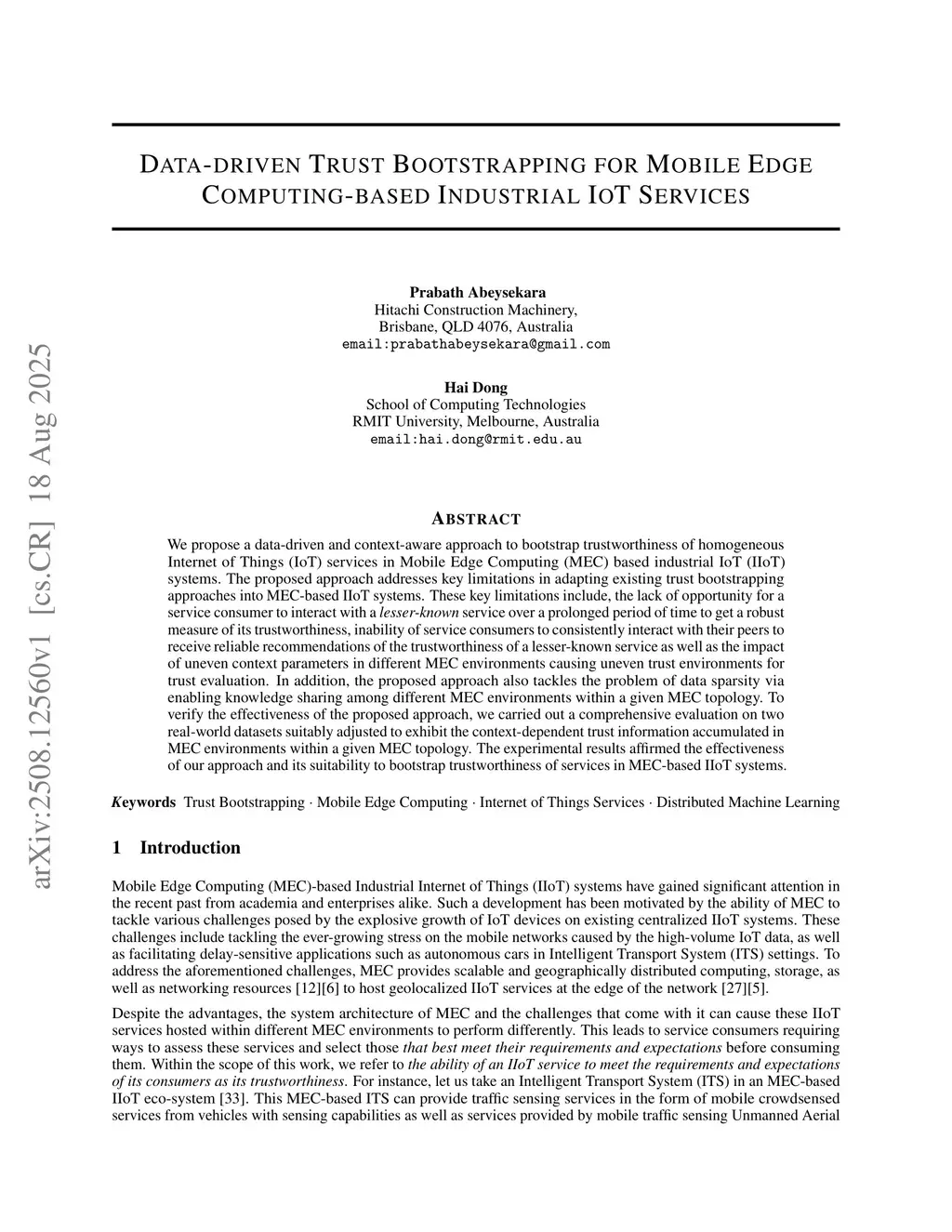 Data-driven Trust Bootstrapping for Mobile Edge Computing-based Industrial IoT Services