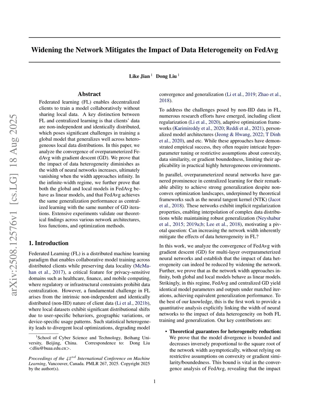 Widening the Network Mitigates the Impact of Data Heterogeneity on FedAvg