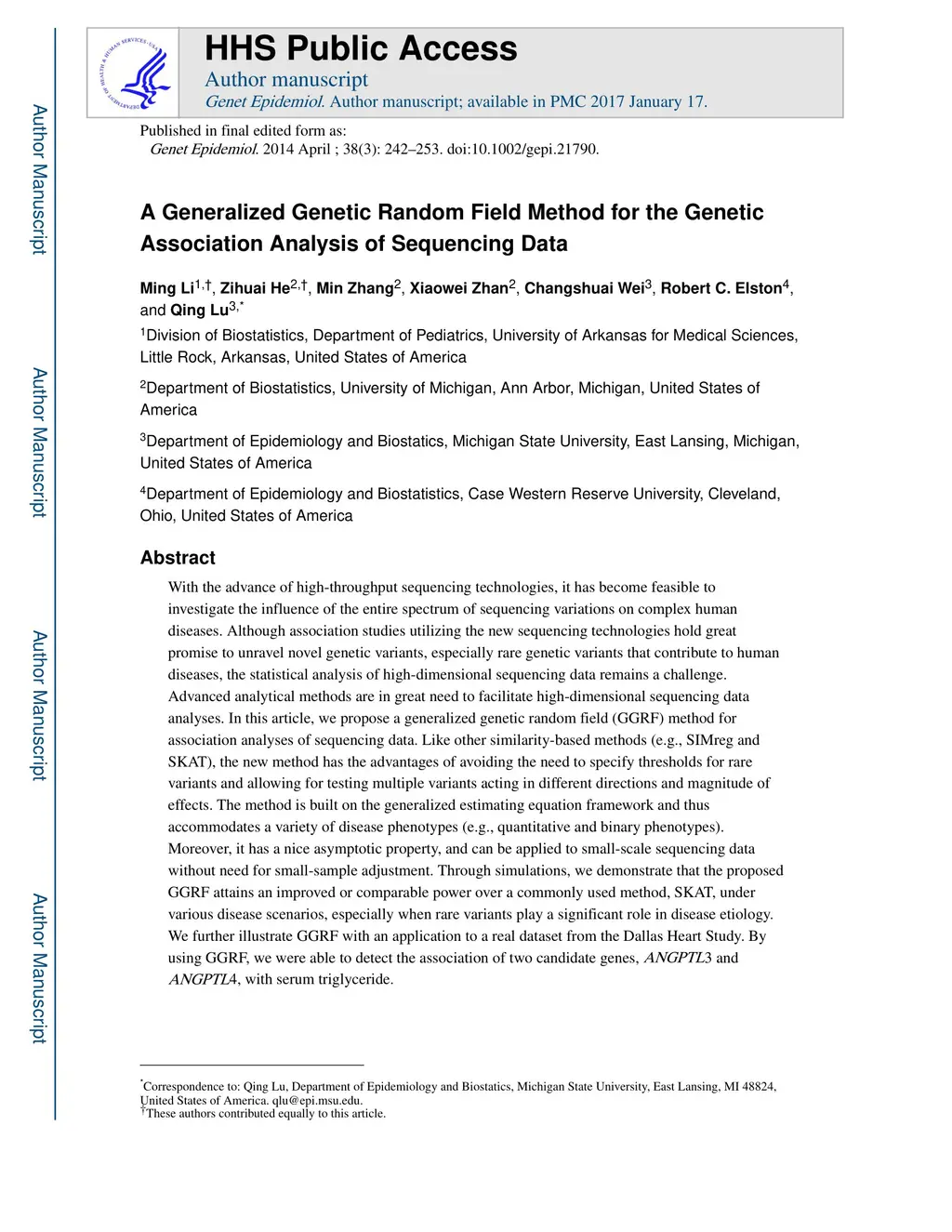 A Generalized Genetic Random Field Method for the Genetic Association Analysis of Sequencing Data