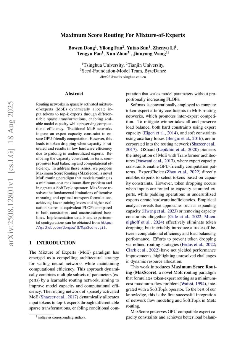 Routing networks in sparsely activated mixture-of-experts (MoE) dynamically allocate input tokens to top-k experts through differentiable sparse transformations, enabling scalable model capacity while preserving computational efficiency. Traditional MoE networks impose an expert capacity constraint to ensure GPU-friendly computation. However, this leads to token dropping when capacity is saturated and results in low hardware efficiency due to padding in underutilized experts. Removing the capacity constraint, in turn, compromises load balancing and computational efficiency. To address these issues, we propose Maximum Score Routing (), a novel MoE routing paradigm that models routing as a minimum-cost maximum-flow problem and integrates a SoftTopk operator. MaxScore resolves the fundamental limitations of iterative rerouting and optimal transport formulations, achieving lower training losses and higher evaluation scores at equivalent FLOPs compared to both constrained and unconstrained baselines. Implementation details and experimental configurations can be obtained from .