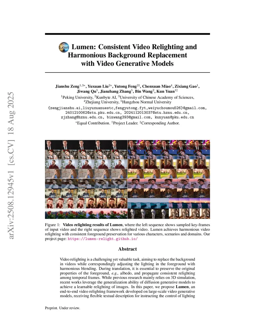 Lumen: Consistent Video Relighting and Harmonious Background Replacement with Video Generative Models