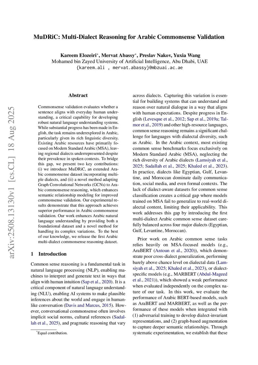MuDRiC: Multi-Dialect Reasoning for Arabic Commonsense Validation
