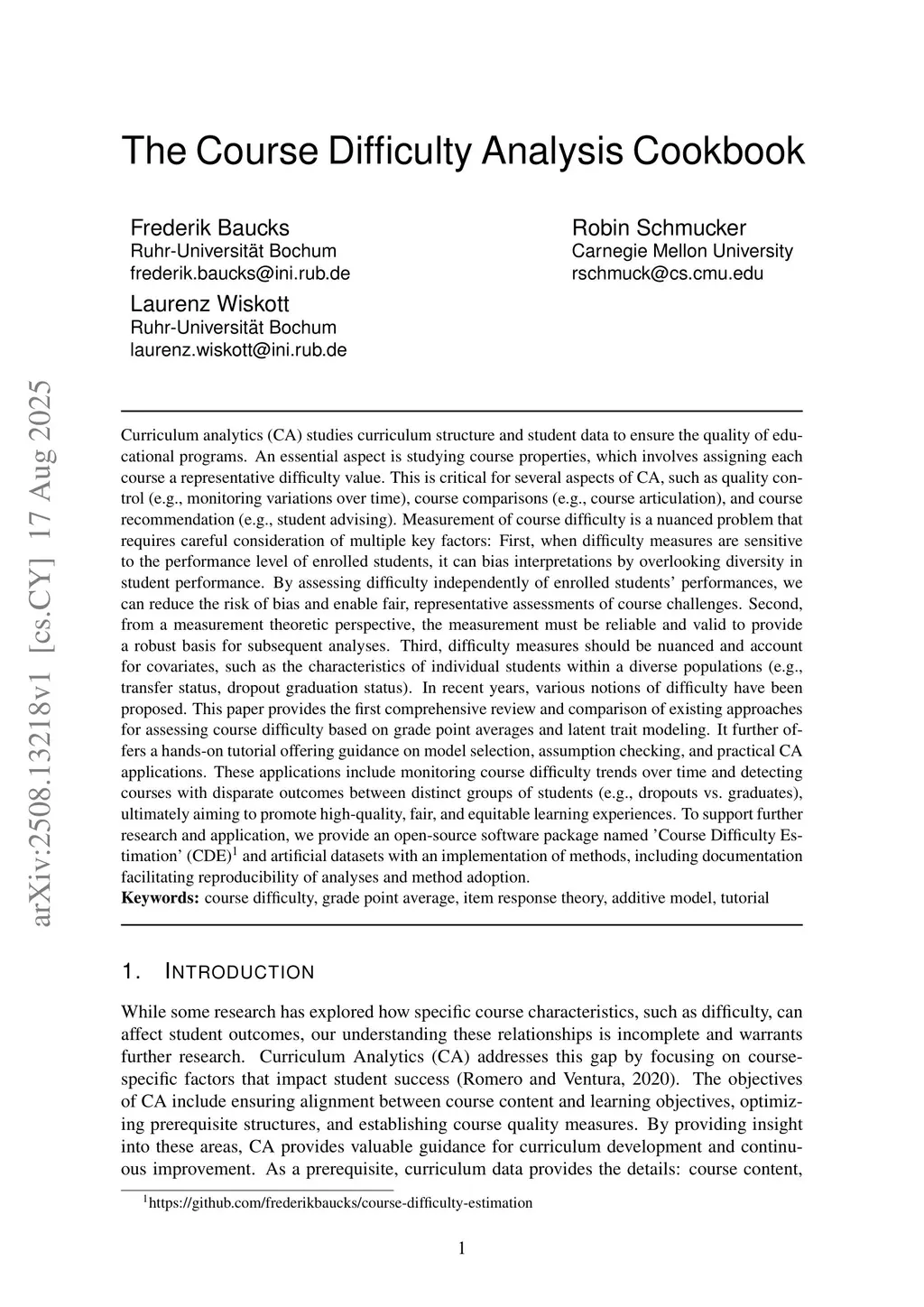 The Course Difficulty Analysis Cookbook