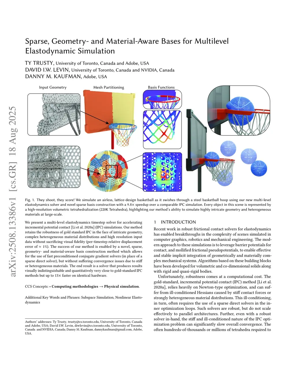 We present a multi-level elastodynamics timestep solver for accelerating incremental potential contact (IPC) simulations. Our method retains the robustness of gold standard IPC in the face of intricate geometry, complex heterogeneous material distributions and high resolution input data without sacrificing visual fidelity (per-timestep relative displacement error of ). The success of our method is enabled by a novel, sparse, geometry- and material-aware basis construction method which allows for the use of fast preconditioned conjugate gradient solvers (in place of a sparse direct solver), but without suffering convergence issues due to stiff or heterogeneous materials. The end result is a solver that produces results visually indistinguishable and quantitatively very close to gold-standard IPC methods but up to faster on identical hardware.