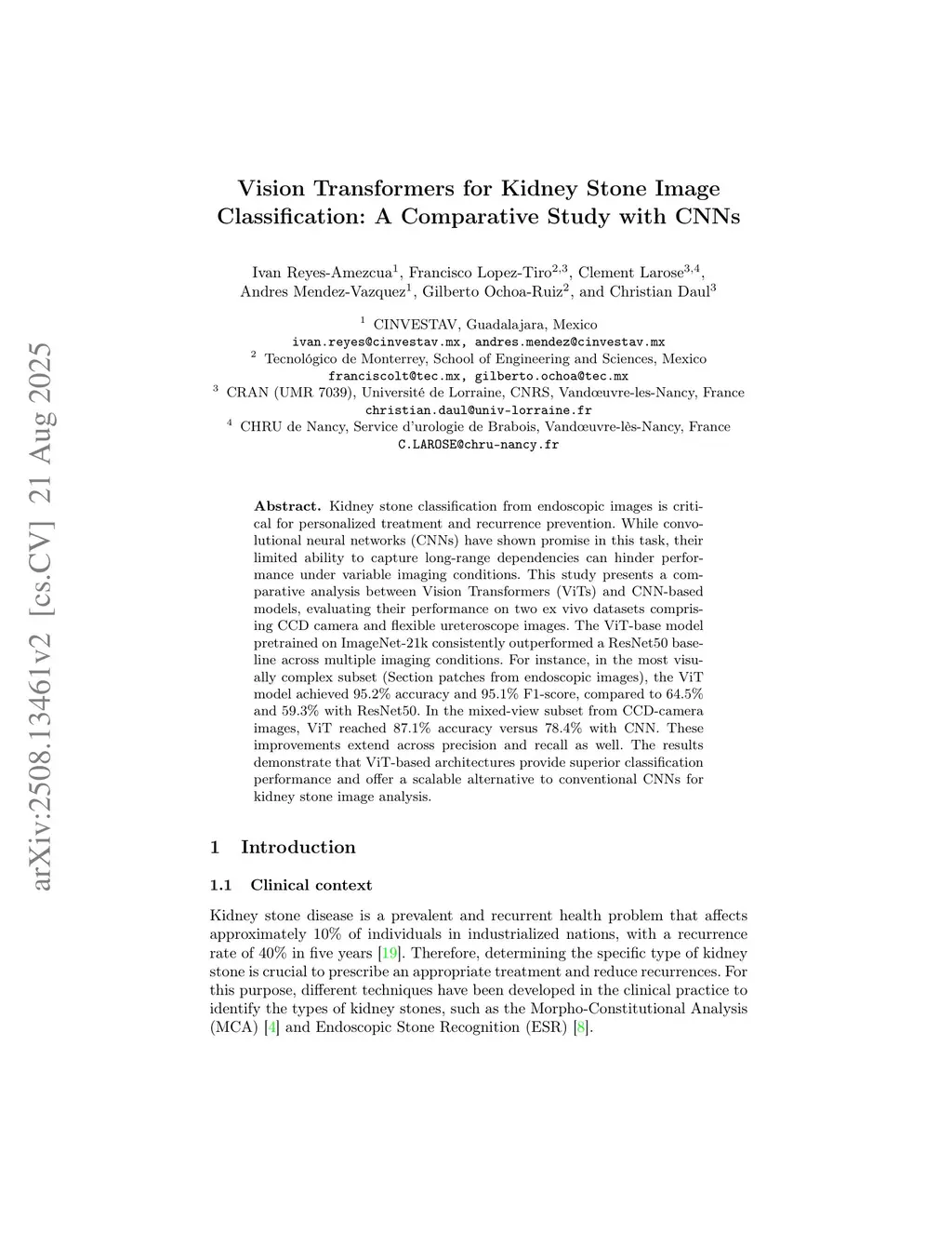 Vision Transformers for Kidney Stone Image Classification: A Comparative Study with CNNs