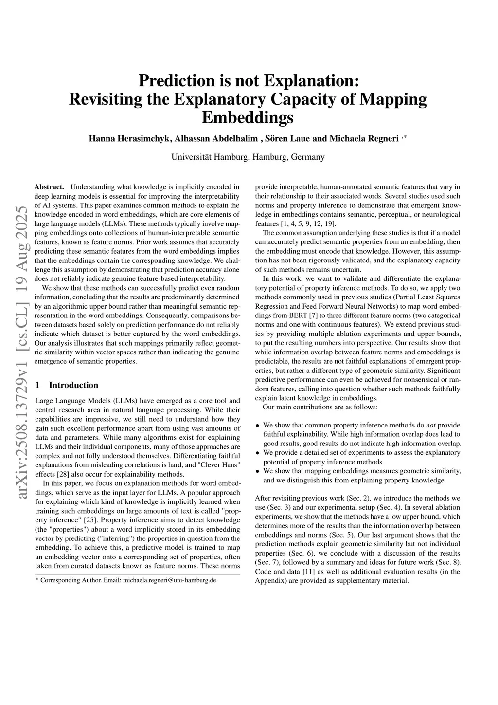 Prediction is not Explanation: Revisiting the Explanatory Capacity of Mapping Embeddings