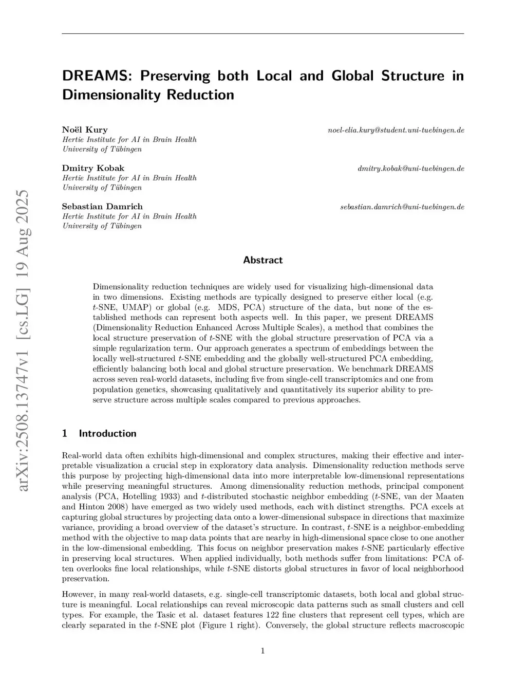 DREAMS: Preserving both Local and Global Structure in Dimensionality Reduction