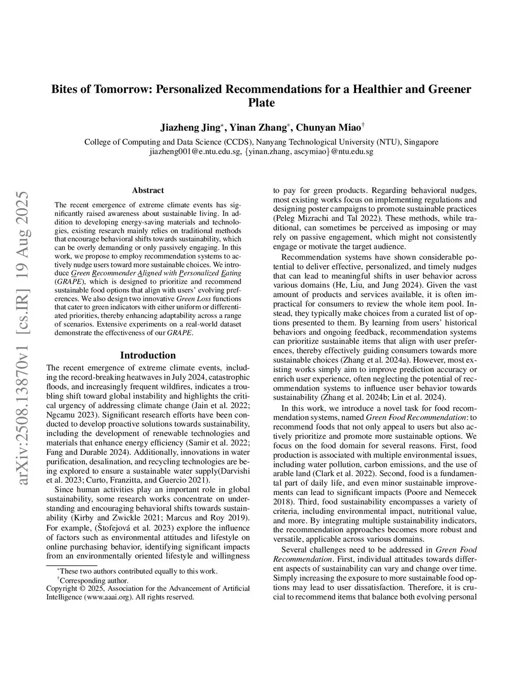 Bites of Tomorrow: Personalized Recommendations for a Healthier and Greener Plate