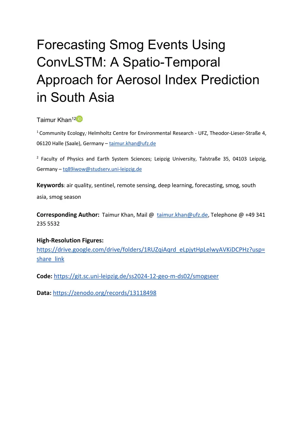 Forecasting Smog Events Using ConvLSTM: A Spatio-Temporal Approach for Aerosol Index Prediction in South Asia