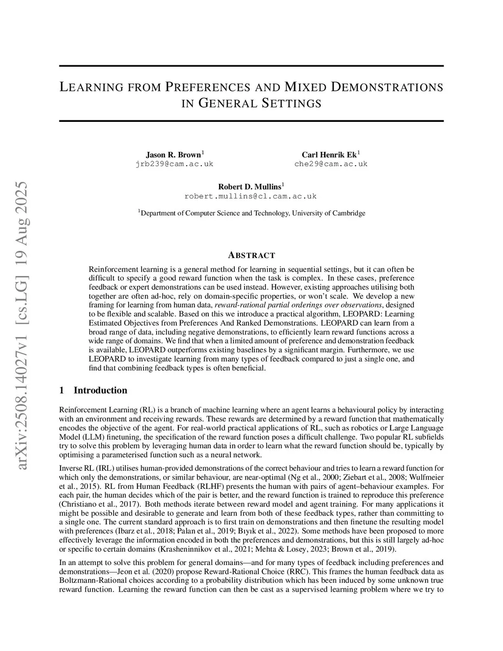 Learning from Preferences and Mixed Demonstrations in General Settings