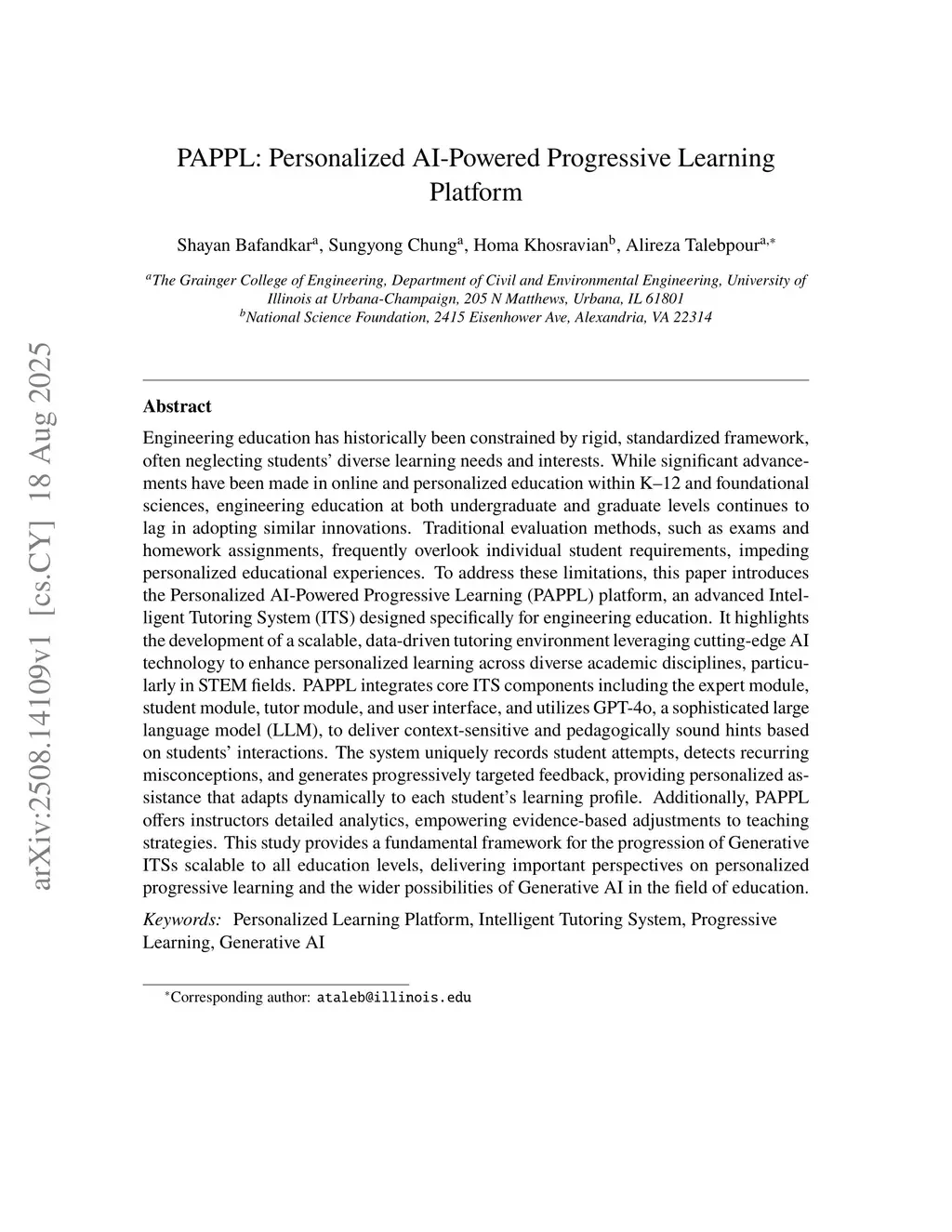 PAPPL: Personalized AI-Powered Progressive Learning Platform