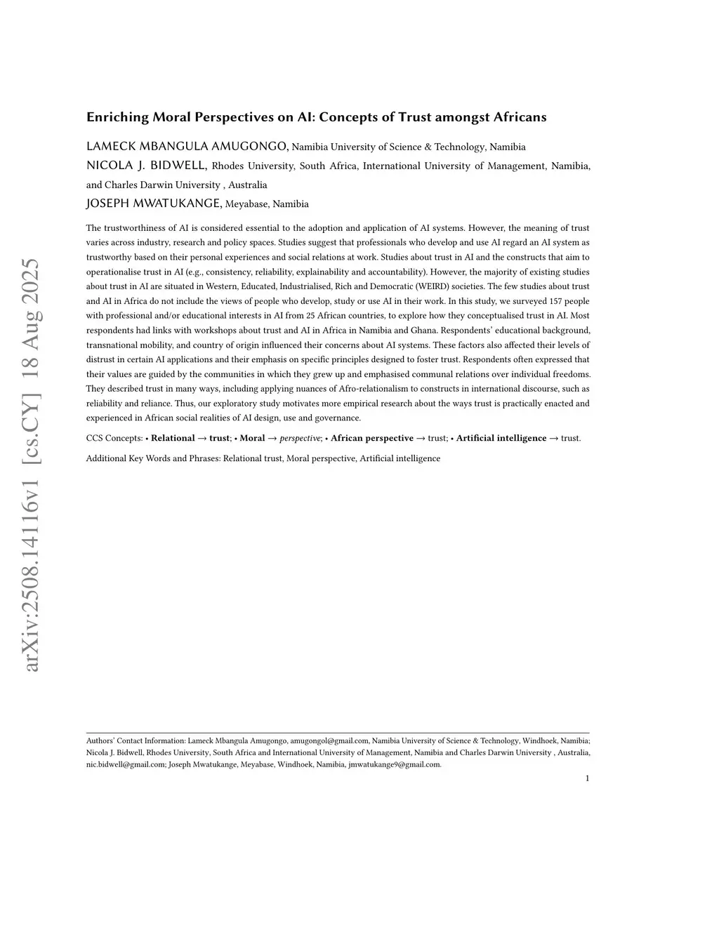 Enriching Moral Perspectives on AI: Concepts of Trust amongst Africans