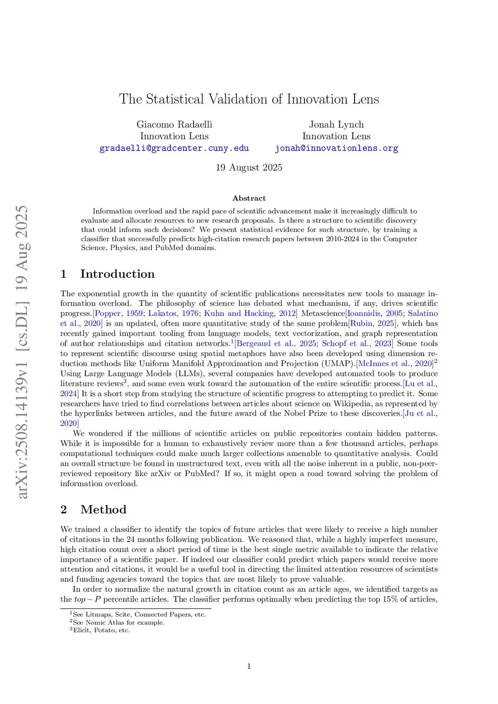 The Statistical Validation of Innovation Lens