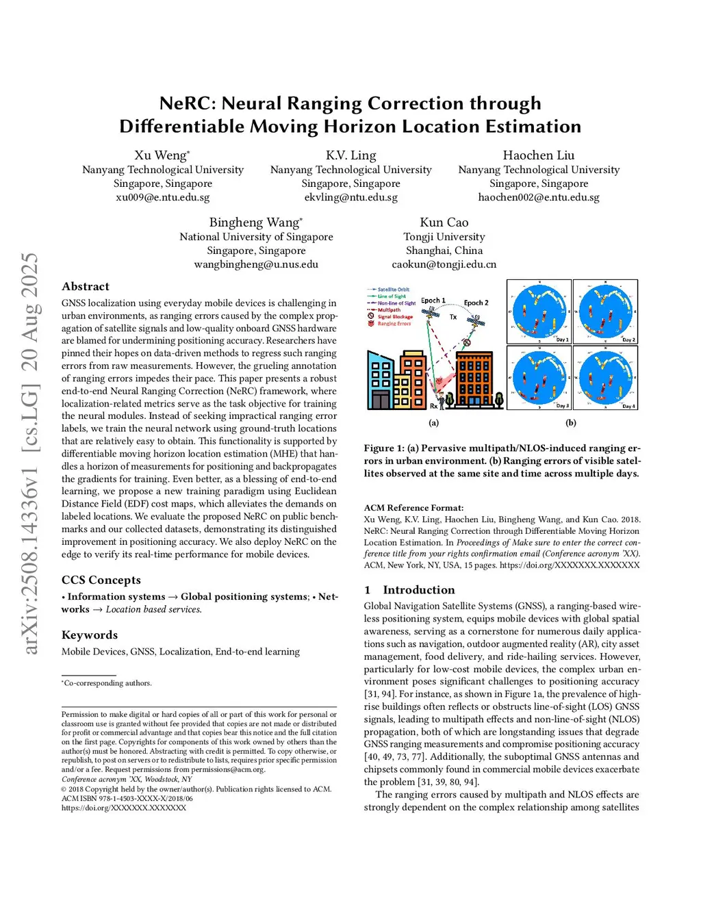 GNSS localization using everyday mobile devices is challenging in urban environments, as ranging errors caused by the complex propagation of satellite signals and low-quality onboard GNSS hardware are blamed for undermining positioning accuracy. Researchers have pinned their hopes on data-driven methods to regress such ranging errors from raw measurements. However, the grueling annotation of ranging errors impedes their pace. This paper presents a robust end-to-end Neural Ranging Correction (NeRC) framework, where localization-related metrics serve as the task objective for training the neural modules. Instead of seeking impractical ranging error labels, we train the neural network using ground-truth locations that are relatively easy to obtain. This functionality is supported by differentiable moving horizon location estimation (MHE) that handles a horizon of measurements for positioning and backpropagates the gradients for training. Even better, as a blessing of end-to-end learning, we propose a new training paradigm using Euclidean Distance Field (EDF) cost maps, which alleviates the demands on labeled locations. We evaluate the proposed NeRC on public benchmarks and our collected datasets, demonstrating its distinguished improvement in positioning accuracy. We also deploy NeRC on the edge to verify its real-time performance for mobile devices.