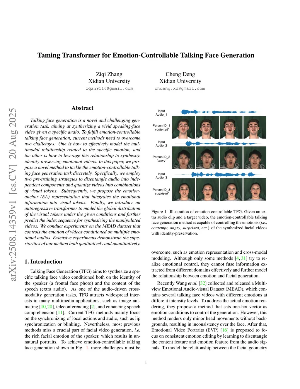Talking face generation is a novel and challenging generation task, aiming at synthesizing a vivid speaking-face video given a specific audio. To fulfill emotion-controllable talking face generation, current methods need to overcome two challenges: One is how to effectively model the multimodal relationship related to the specific emotion, and the other is how to leverage this relationship to synthesize identity preserving emotional videos. In this paper, we propose a novel method to tackle the emotion-controllable talking face generation task discretely. Specifically, we employ two pre-training strategies to disentangle audio into independent components and quantize videos into combinations of visual tokens. Subsequently, we propose the emotion-anchor (EA) representation that integrates the emotional information into visual tokens. Finally, we introduce an autoregressive transformer to model the global distribution of the visual tokens under the given conditions and further predict the index sequence for synthesizing the manipulated videos. We conduct experiments on the MEAD dataset that controls the emotion of videos conditioned on multiple emotional audios. Extensive experiments demonstrate the superiorities of our method both qualitatively and quantitatively.