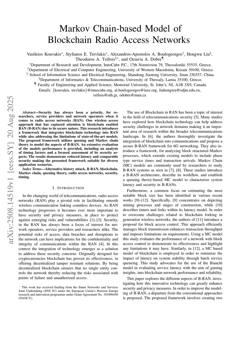 Markov Chain-based Model of Blockchain Radio Access Networks