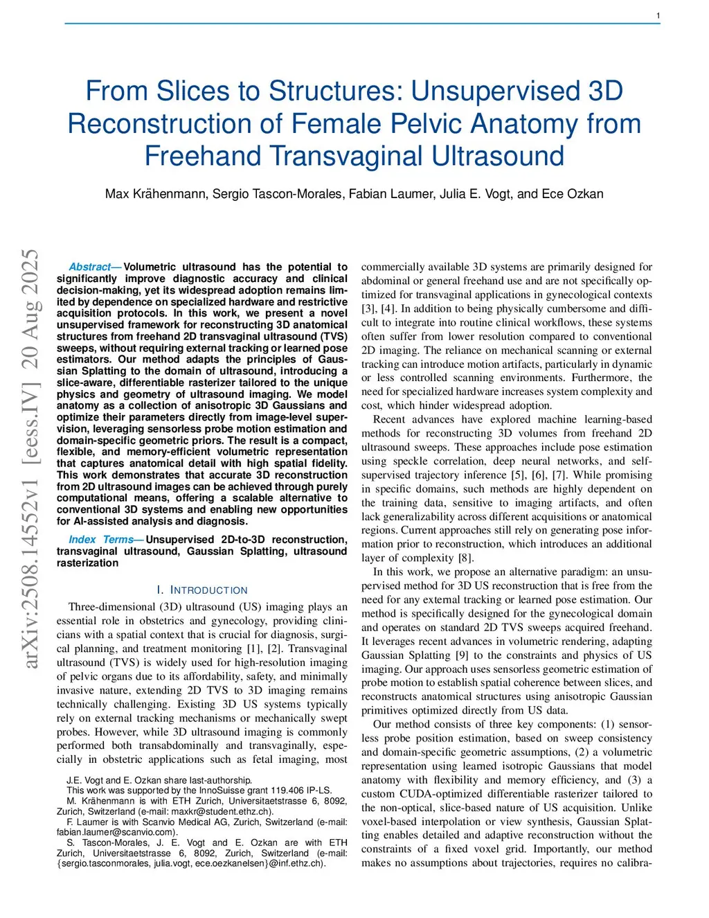 From Slices to Structures: Unsupervised 3D Reconstruction of Female Pelvic Anatomy from Freehand Transvaginal Ultrasound